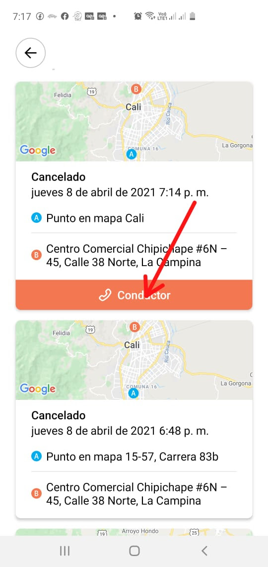 Si has olvidado un Objeto en el Vehículo, puedes obtener el número celular del conductor ingresando al menú de tu app MIS ORDENES